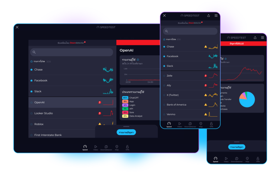 ติดตามตรวจสอบและรายงานปัญหาเกี่ยวกับบริการที่คุณชื่นชอบแบบเรียลไทม์โดยใช้ Downdetector แพลตฟอร์มที่ได้รับความนิยมมากที่สุดในโลกสำหรับการติดตามการขัดข้องและการเชื่อมต่อ